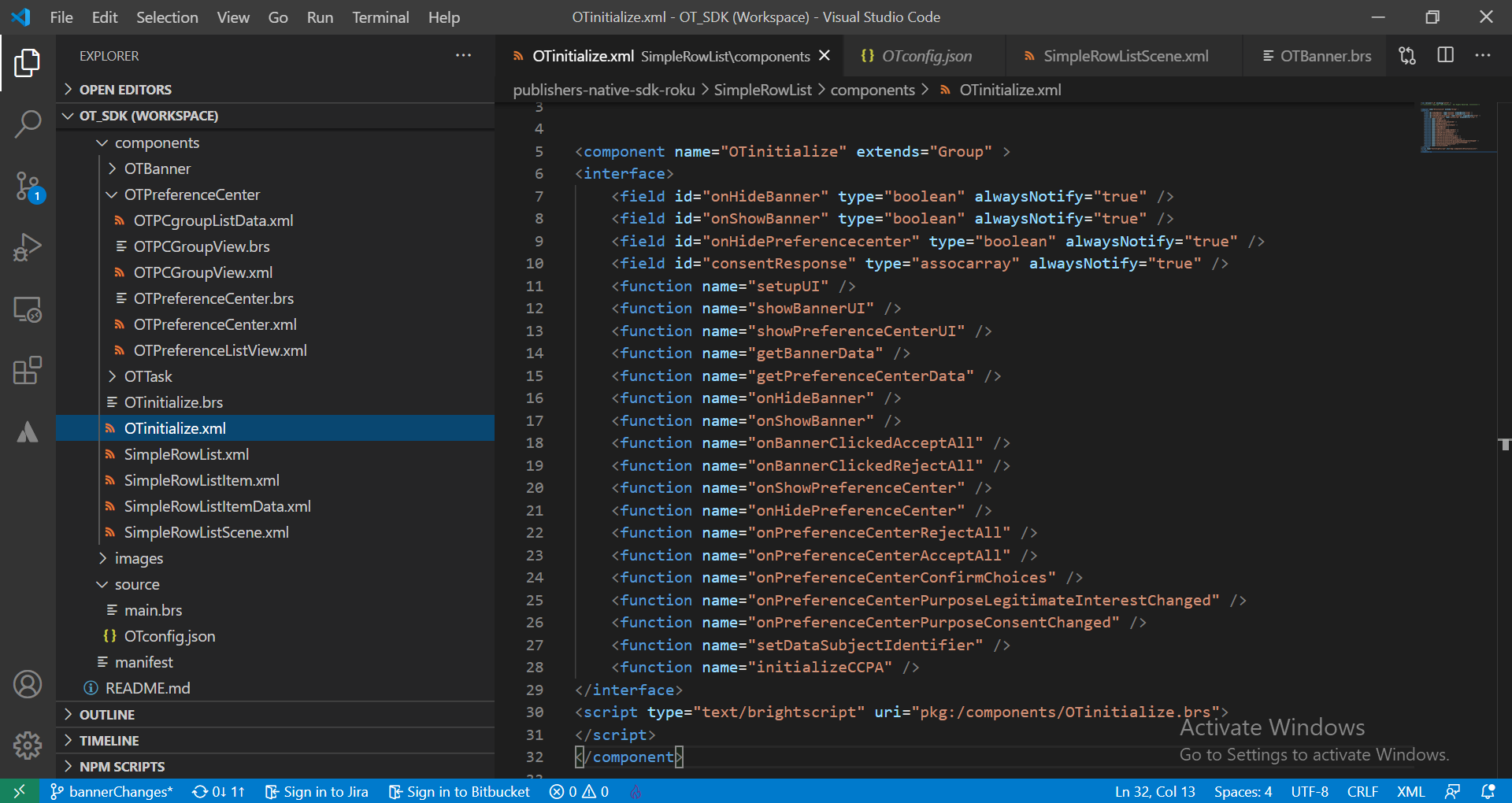Open the scene.brs and create the OTinitialize node in the init() as m.global.OTsdk = CreateObject(βroSGNodeβ,βOTinitializeβ)
